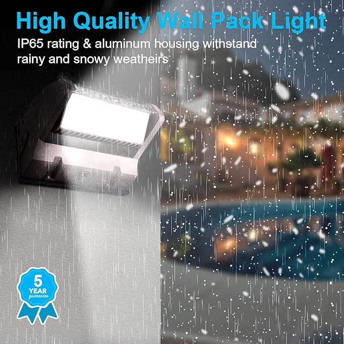- ⭐【High Quality】- This led wall pack is made of die-cast aluminum structure, made of high-quality shatterproof epoxy resin, IP65 Waterproof and Dustproof rating make this LED Light Wall Pack the perfect option for worry-free outdoor lighting. it is listed by UL DLC