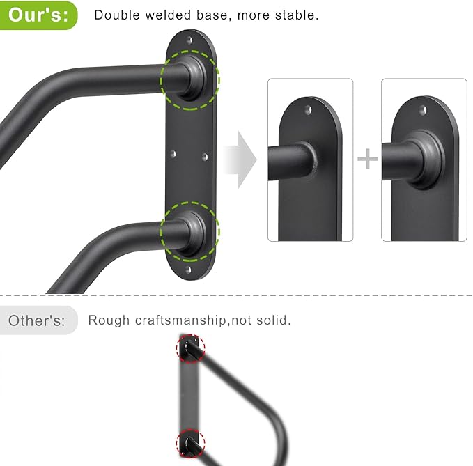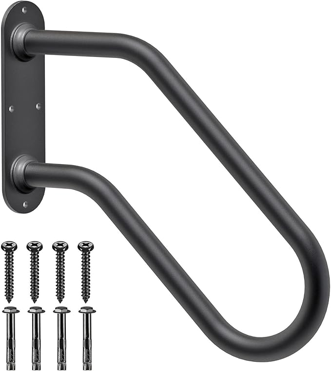 - 【Easy Installation】The safety handle had welded on the base, durable use, provides safe and convenient. You only need to install on wall/pillar where you want.Packing list: 1 x hand railings for stairs, 4 x screws and 4 x iron tube for concrete/brick