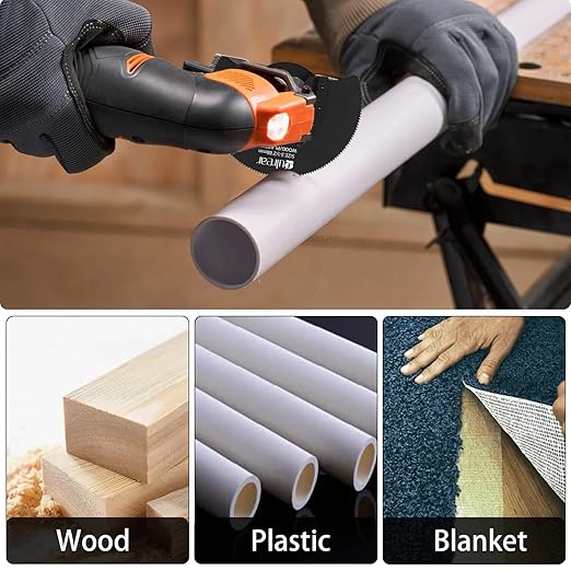 - 【Durable Titanium Oscillating Blades】: Heat-resistant titanium coating extends lifespan 3x longer than standard blades. Ideal for metal/wood cutting without rust or deformation.Please choose the right saw blade when cutting different materials, titanium plated saw blade is suitable for cutting soft metal, nails, etc., HCS saw blade is suitable to meet the daily softwood, pine, plastic some cutting, the circular edge saw blade is the same object on the cutting method is different, which can allow you to better improve the cutting efficiency and complete the cutting work, half-circular saw blade can be used for removing the cement slurry, scraping, cutting carpet and so on.