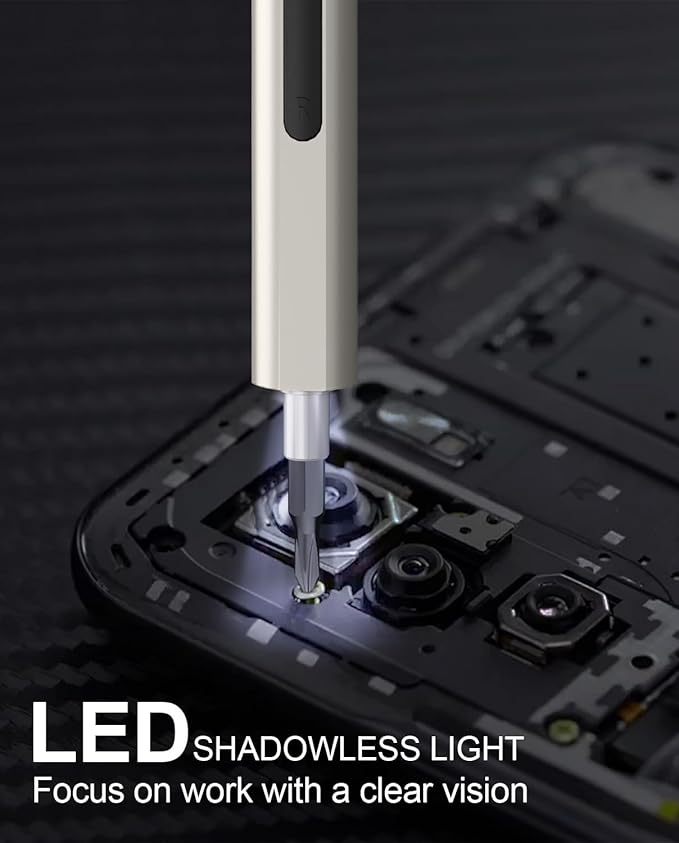 - Dual Mode & LED Working light: The forward and reverse button allows you to tightening or loosening screw bits with just a single press. 3 built-in LED lights ensures accurate work when using in low light with darkness. All these ergonomic design makes the electric precision screwdriver easy to use with great convenience and comfort