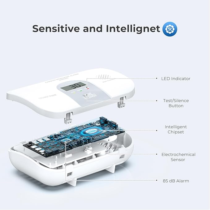 - High Accuracy & Reliability: This carbon monoxide detector conforms to ETL standards and has a built-in advanced electrochemical sensor that detects dangerous CO levels more accurately and responds more quickly. In case of danger, the carbon monoxide detector gives an alarm of no less than 85dB to 3-meter, providing you the ultimate protection