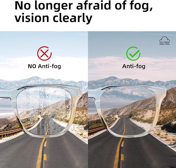 - [Lightweight & Comfortable] With PC material of lens, ultraviolet Light Protection, extremely lightweight. You can say goodbye to the traditional goggles with heavy design, making your everyday life a bit more comfortable.