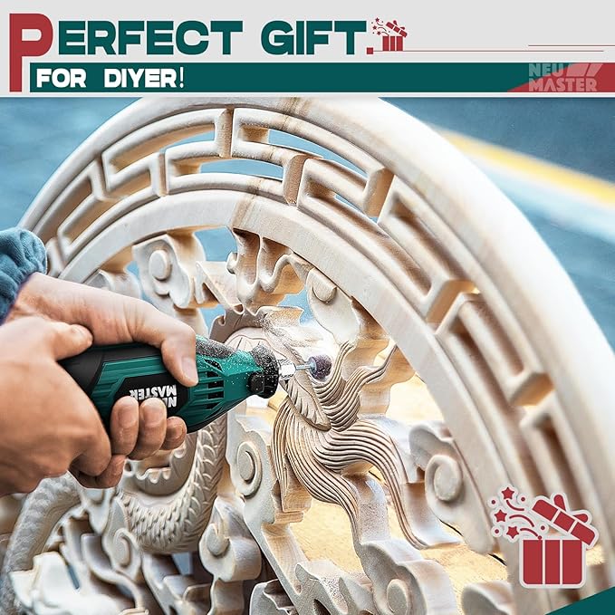 - ๐ใPERFECT CHRISTMAS PRESENT FOR CRAFT LOVERSใBuy NEU MASTER Rotary Tool for your parents, friends and lover who like DIY and crafting projects, it is a christmas surprise for people who like handmade jobs. It suitable for polishing, sanding, engraving, grinding, carving and drilling work. Easily meet your need for Halloween DIY projects at home or events.