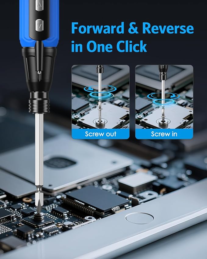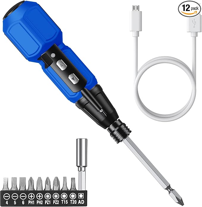 AMIR Power Screwdriver Cordless Rechargeable, Electric Screwdriver Sets, Portable Automatic Home Repair Tool Kit, Motorized Screwdriver with LED Lights and USB Cable, Blue