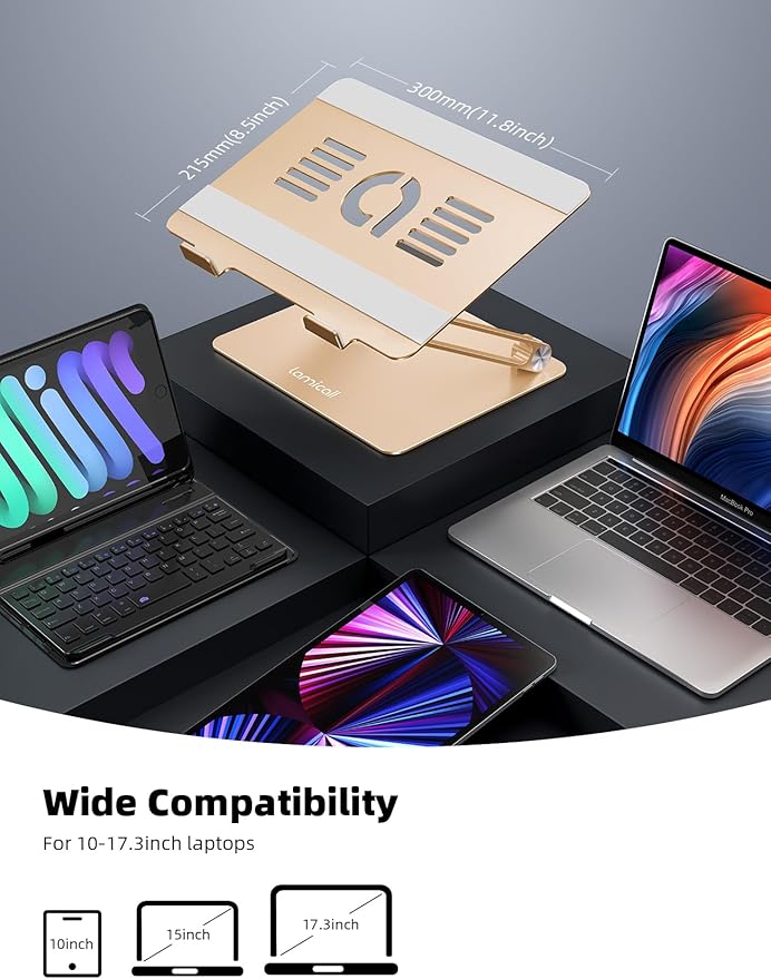 - Wide Compatibility: The laptop stand for desk is compatible with all laptops from 10" up to 17.3", such as Mac MacBook Pro 16 14 inch 2021 Air 12 13 15 inch 2018 2019 2020 Microsoft Surface Google Pixelbook Dell XPS HP Acer Chromebook and more 11inch - 17.3 inch laptop notebooks. Christmas Gifts Thanksgiving Present Regalos de Navidad.