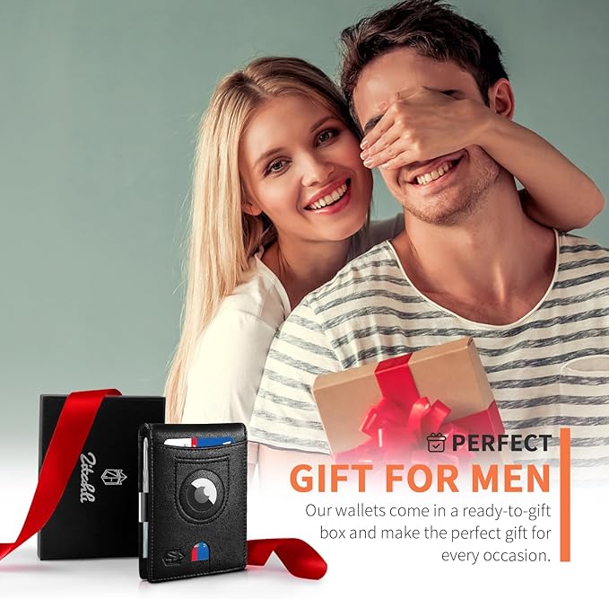 Zitahli Men's Wallets Airtag Holder Slim Rfid Leather with Gift Box