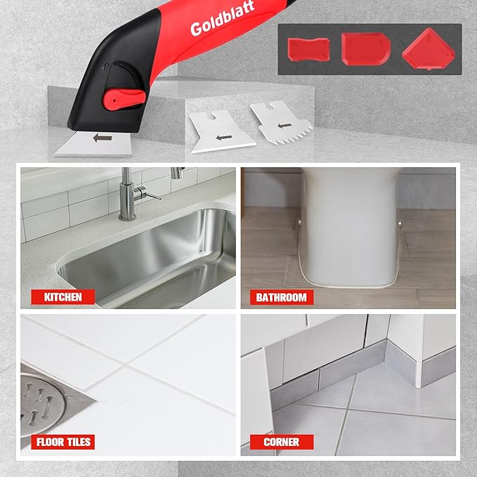 - Caulking Tool Kit: Goldblatt silicone caulking tool kit for removal and renewing silicone joints. 3pcs stainless steel scraper blades help you cleaning the residual glue, and 3pcs plastic sealant finishing tools help you to finish work faster