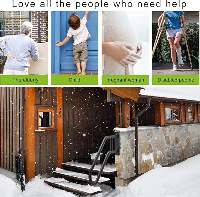 - 【Easy Installation】The safety handle had welded on the base, durable use, provides enough safe and convenient. You only need to install on jamb/corner/door frame where you want. Packing list: 1 x Right hand railings for steps, 4 x screws for wood and 4 x iron tube for concrete/brick