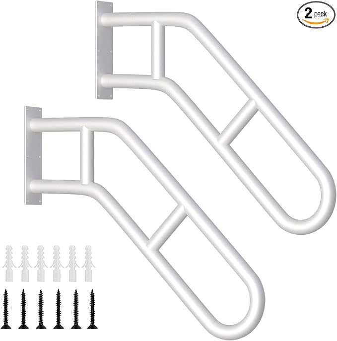 - 【Easy to Install and Maintain】Each wall mounted hand railing has 6 screw holes (screws included), suitable for various walls such as wood, ceramic tile, cement, etc. You can install it independently in less than 10 minutes. Just wipe handrails with a damp towel to keep it clean.