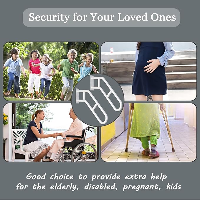 - 【 Multi-Functional Hand Railings for Stairs】The safety grab bars can meet the various needs of indoor and outdoor 1-3 step stairs. Whether install in the garage or in the courtyard, it is a good choice to provide extra help for the elderly, disabled, pregnant, kids.