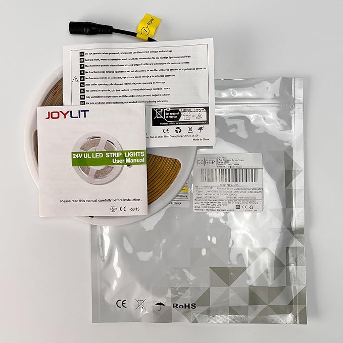 - [ High Brightness LED Strip ]: The brightness of JOYLIT 480LEDs/M COB LED Strip lights is 9000-9500lm, most regular COB led strip is about 4000lm, ours are 2 times brighter than other COB LED Strip. Can be used for daily lighting purpose, not just as a decorative led strip.