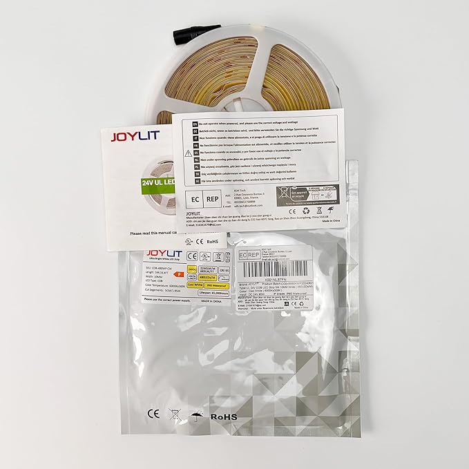 - [ 24V Safety UL LED Strip ]: UL listed means you can install this COB LED strip with confidence in industrial, commercial, and residential. Powered by 24V DC voltage which can provide higher performance with regard to safety compared to a 220V light strip, it's touchable and harmless. Compared to a 12V/USB light strip, 24V has the advantage of lower voltage drop, which means the brightness at the end is almost the same as the head of the light strip.