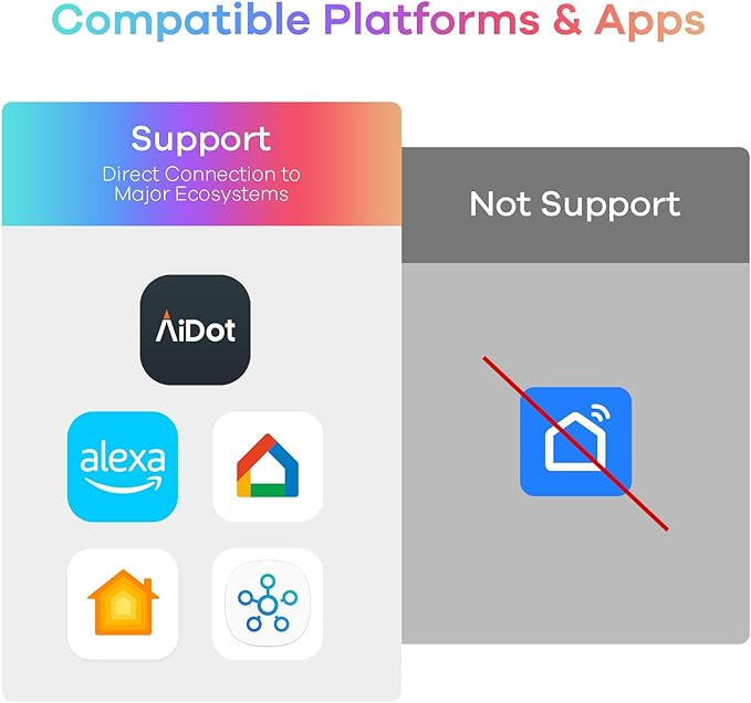 - 【NOTE】Do not use with dimmable fixtures equipped with dimmer switches, as this may cause flickering in the light bulb. Additionally, all of our smart devices only support 2.4G networks. If you have any further questions, please feel free to contact us.