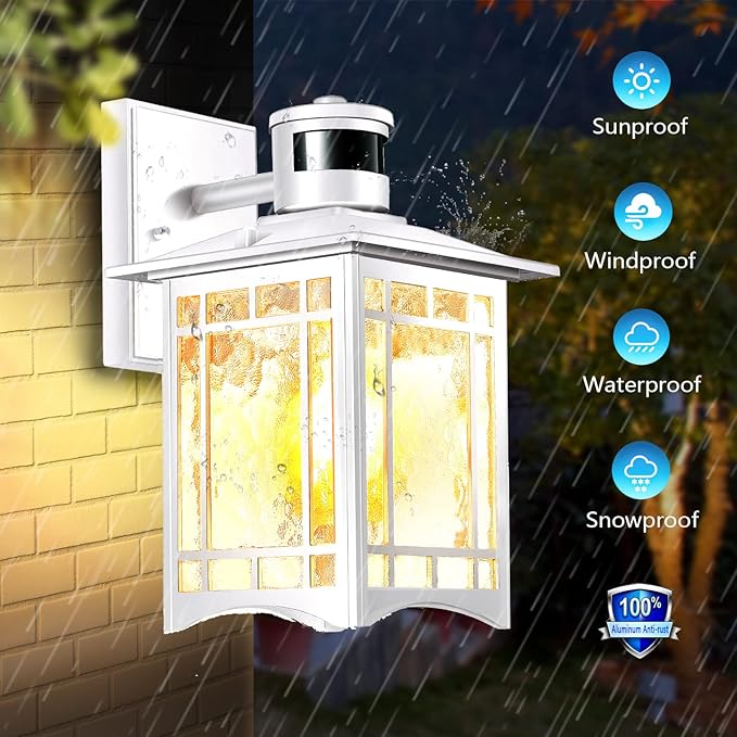 - 【Integrated Motion Activated & Dusk To Dawn Sensor】Our coach light creatively integrates advanced PIR technology & photocell sensors to make it work smart and energy-saving.