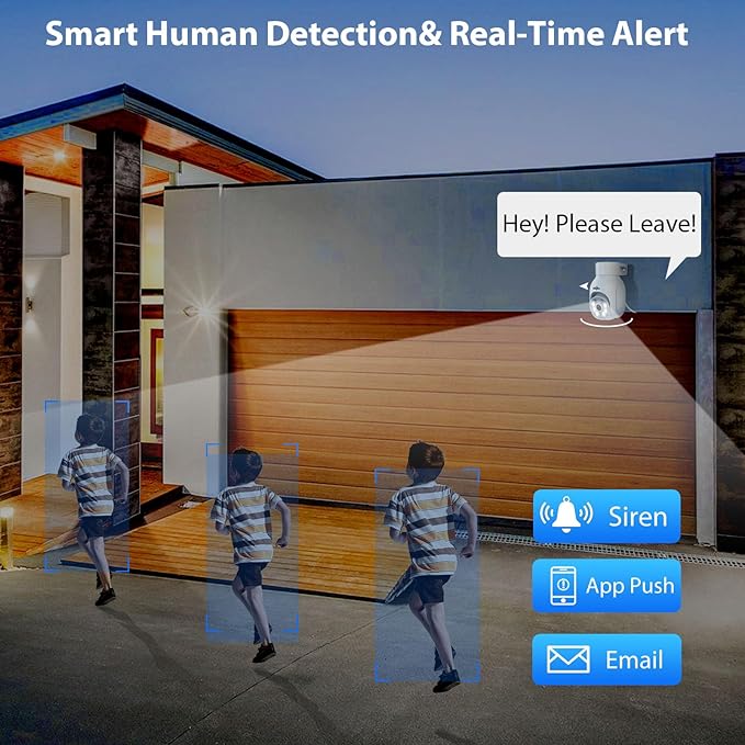 - 5MP Camera & Flexible Viewing Angle: Equipped with 4Pcs 5-Million-Pixel PTZ cameras and high tolerance CMOS, the camera enables a crystal clear viewing on your security system. The PTZ camera can rotate all around, which avoids a dead end of surveillance-- 355°horizontally & 95°vertically. 120-degree viewing angle let you monitor wider areas to protect the safety of your family and property.