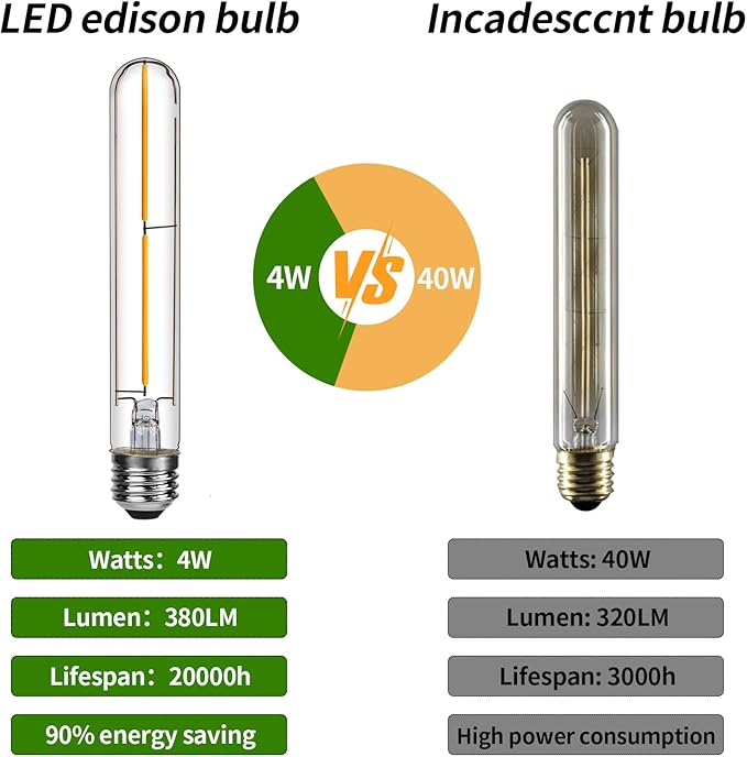 - 1. Classic Vintage Edison Design: These 7.3-inch T10 LED bulbs feature a vintage Edison style with an elegant, elongated shape that adds a timeless touch to your lighting fixtures.