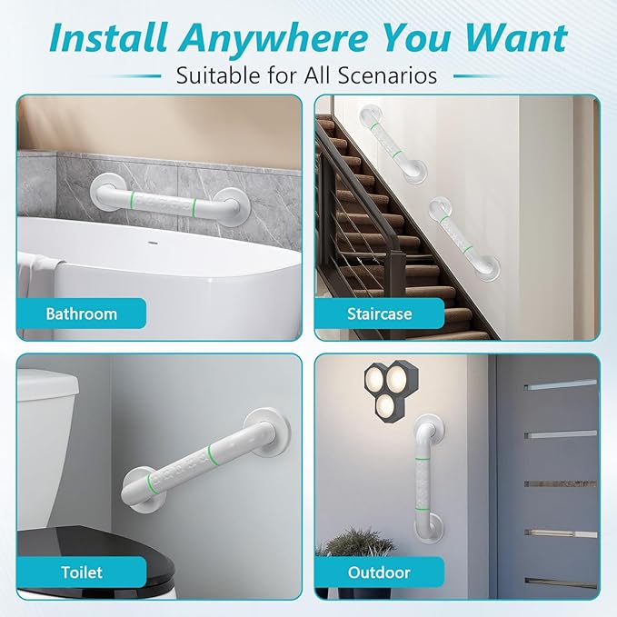 - [Ergonomic Design]:The surface of the bathroom armrest has a concave convex texture design, which can provide comfortable anti-skid grip when in use, and can ensure the safety of users even in wet conditions.There are also two luminous designs in the grip area, which can help you catch the handrail in time even in the dark