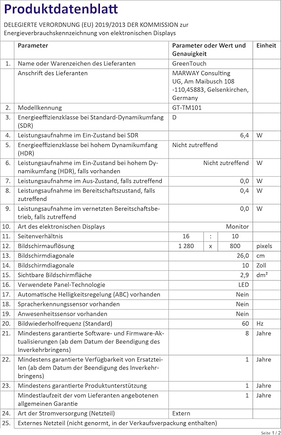 GreenTouch 10.1 Inch Desktop Wall Mountable Multi PCAP Touch Screen Monitor - HDMI/VGA/DVI Input,1280 * 800 Resolution Display
