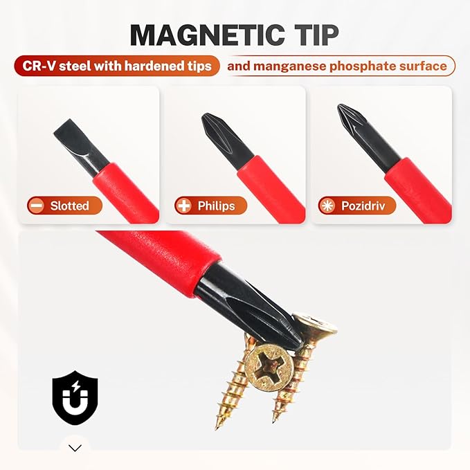 - This electrical screwdriver set is crafted from premium chromium vanadium steel with hardened tips and a manganese phosphate surface treatment.