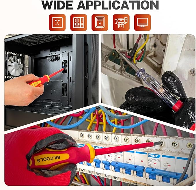 BILITOOLS Insulated Screwdriver Set, 9pcs 1000V Electrical Screwdriver Insulated VDE Tools for Electrician Magnetic Phillips Slotted Pozidriv Tips