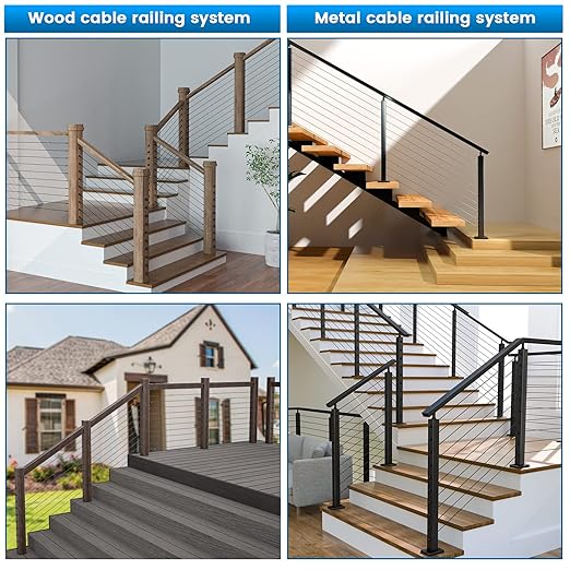 - Level and Angle Installation: This cable railing kit is suitable for both level and angled sections. 30 degree angled beveled washer Muzata CR25 is needed for stairs installation