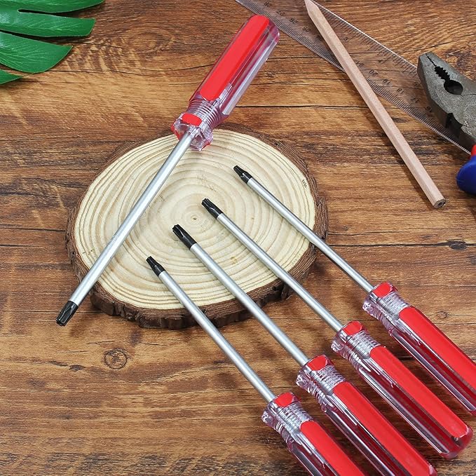 - ❤Material: The shaft of this Torx screwdriver is made of high quality steel, which is rust and corrosion resistant and has a long service life. The handle is made of high-quality plastic with non-slip grooves for a comfortable feel.