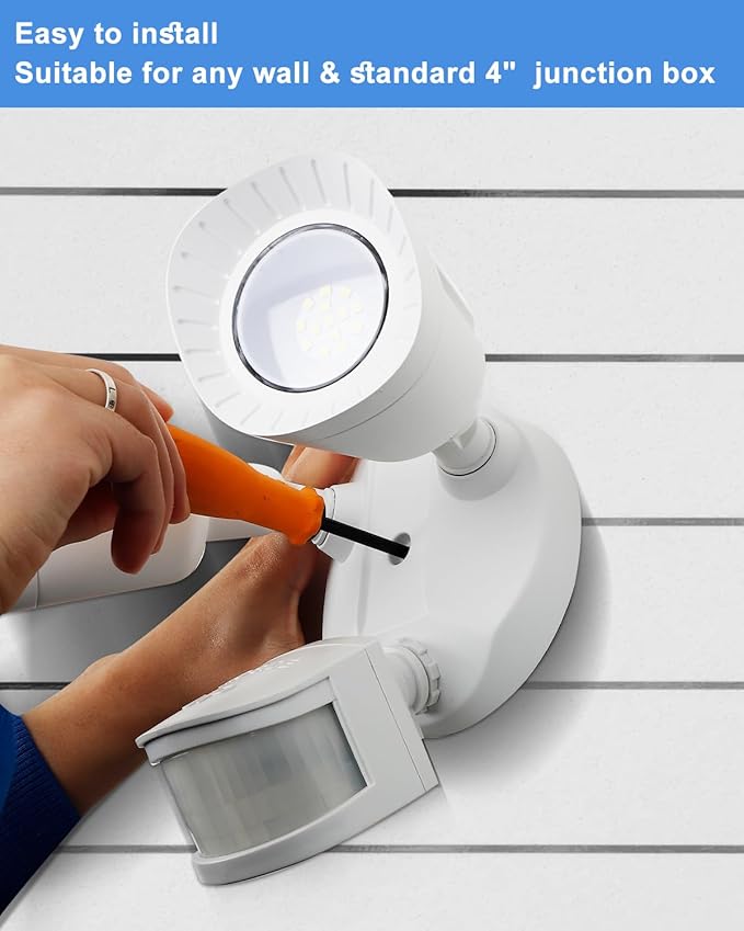 - [Adjustable&Easy to Install] The 120V waterproof security light lamp head can be rotated to meet different lighting angles requirements.Installation requires only a few wiring steps, suitable for 4 "junction boxes.