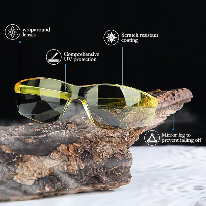 - Anti Scratch Function: eye protective glasses are mainly made of polycarbonate material, scratch proof and impact proof, ultraviolet protective and long lasting, providing you with clear visions as well as protecting your eyes from debris and sunlight during outdoor activities