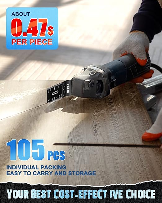 FORCA Multi Tool Blades Kits, 105pcs Universal Oscillating Tools Saw Blades for Wood, Fine Tooth Multitool Blades, Durable High Carbon Steel