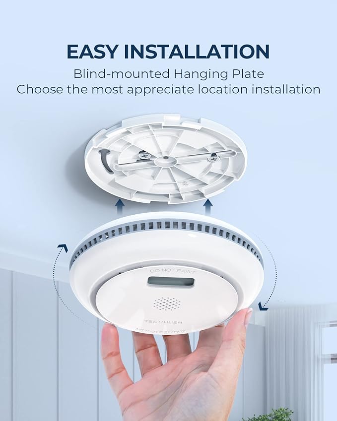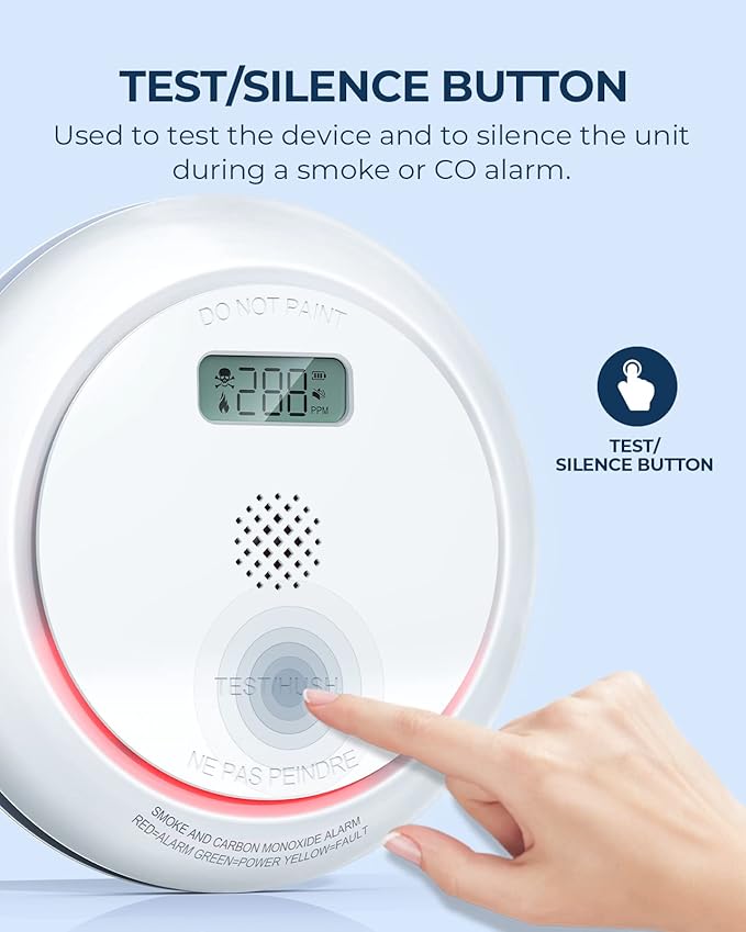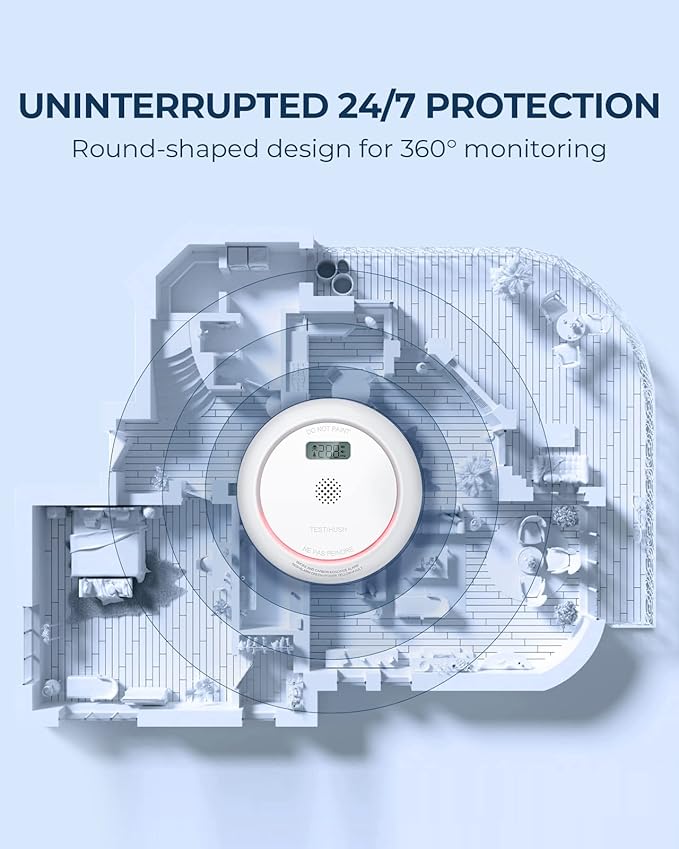 - 2-in-1 Protection: The smoke detector carbon monoxide detector combo equipped with an electro-optical smoke sensor and an electrochemical CO sensor, provides more comprehensive protection for the family