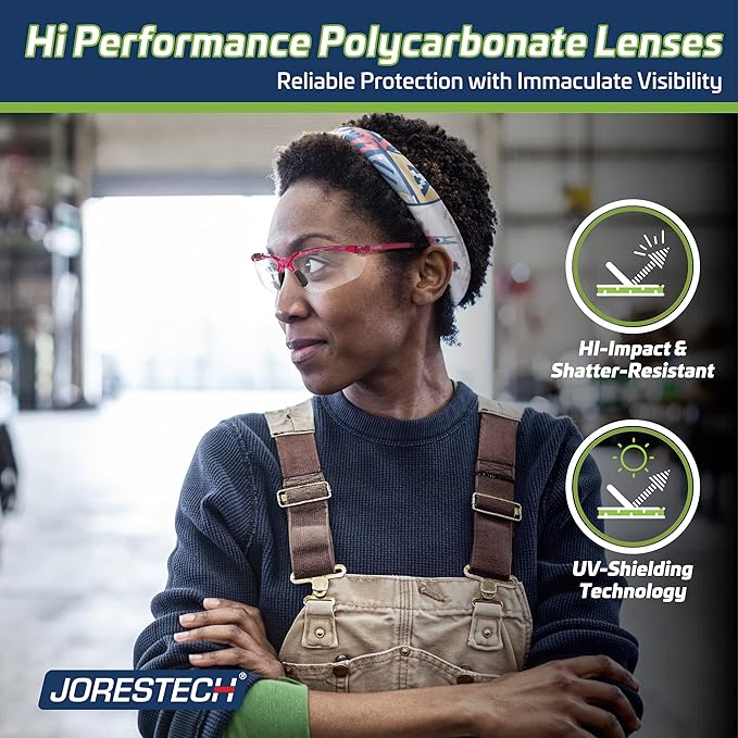 JORESTECH Safety Eyewear, ANSI Z87+ Impact Resistant Polycarbonated Eye Protection Safety Glasses, pack of 12