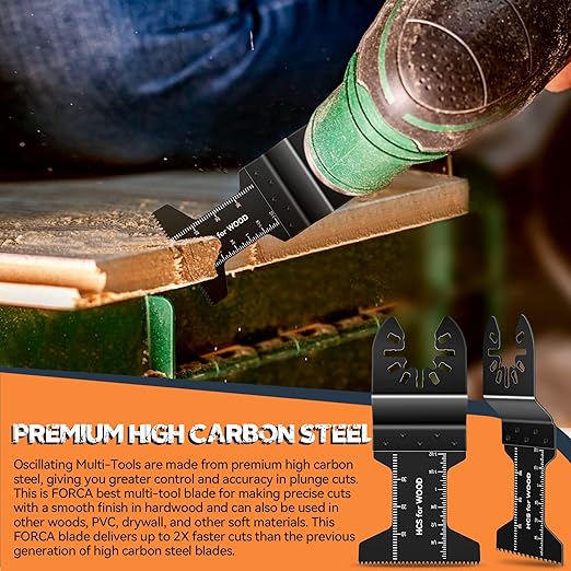 FORCA Universal Oscillating Saw Blades 52 pcs Fine Tooth Multi Tool Blades Kit for Quick Cutting, 1-3/4” Multitool Blades with High Carbon Material for Wood, Compatible with 95% Oscillating Tools Mod