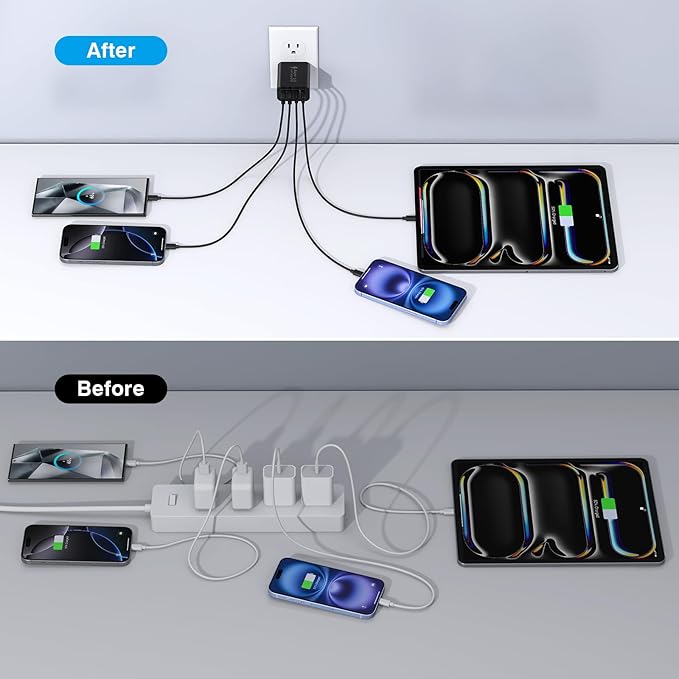 - Universal Compatibility:Due to the special 4-port,the USB charger is compatible with almost all electronic devices,charging adapter for iPhone 16/16 Pro/16 Pro Max/16 Plus/15/15 Pro /15 Pro Max/15 Plus/14/14 Pro/14 Pro Max/14 Plus/13/13 Mini/13 Pro Max/12/12 Pro Max/12 Pro Max/12 Mini/SE 2020/11/11 Pro/11 Pro Max/XR/XS/X/8/7,iPad Air/Pro/Mini,Samsung Galaxy S23/S22/S21/S20/S10/S9/S8/A12/A13/A22/A32/A52/A53/A71/Note 20 10,Tablets,LG,Motorola,Google Pixel and other digital devices compatible