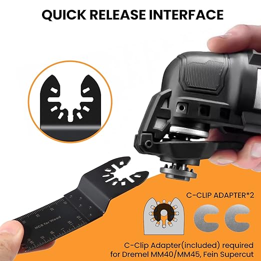- Universal Interface: Our oscillating saw blades for wood is compatible with many swing tools, Such as fit for Fein Multimaster, Ryobi, Milwaukee, Hitachi, Black & Decker, Chicago, Craftsman, Bosch, Dremel, Makita, Rockwell, Rigged and others. With C clip adapter, they can fit for Dremel MM40 & MM45 and Fein Supercut.