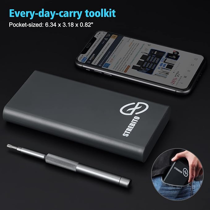 - 【S2 Steel Bits】Every driver bit of STREBITO precision screwdriver set is made with premium S2 steel and has a hardness of up to 60HRC for long-lasting reliability. The precisely CNC-machined bits fit perfectly into screws and protect both the bit and fasteners from damage. This small screwdriver set will help you get the work done with ease with long tool life