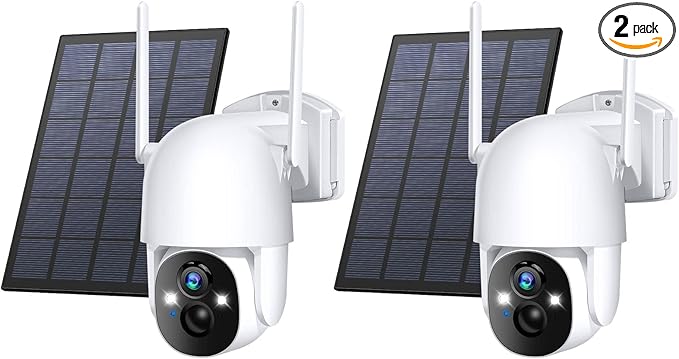 Solar Security Cameras Wireless Outdoor, 3MP 2K FHD Outdoor Camera Wireless 2.4G Wi-Fi 355° View Pan Tilt Security Cameras with AI Motion Detection, Siren (2 Pack)