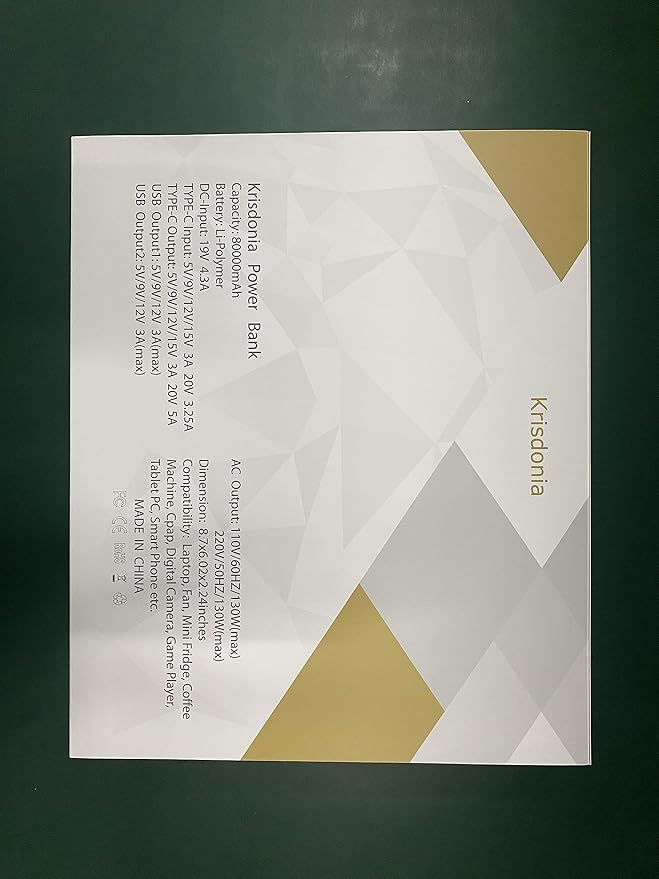 Krisdonia Power Bank with AC Outlet, Portable Laptop Charger Battery Bank USB C 100W Fast Charging, 80000mAh/296Wh Power Station External Battery Pack 130W/110V for Outdoor Camping Home Office
