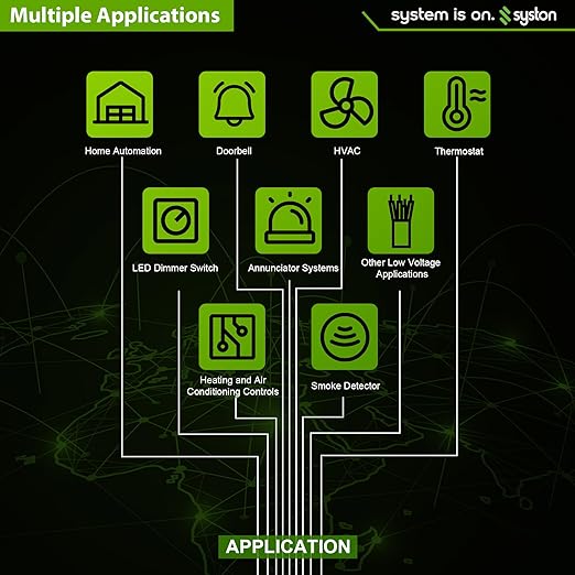 Syston 18/4 Thermostat Doorbell HVAC Heating Control Cable Wire, 100% Solid Copper Conductors CL3R/FT4/CMR Riser-Rated UL/ETL Listed, UV Resistant RoHS for Indoor/Outdoor Low Voltage Applications Use