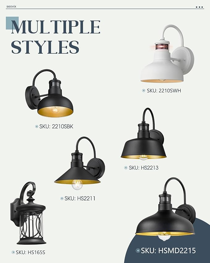 7“ Motion Sensor Outdoor Lights, Outdoor Light Fixture Dusk to Dawn with E26 Base Socket, IP65 Waterproof Outside Wall Light for Barn, Balcony, Entrance, Front Door, Porch, 2210SBK(G)-1