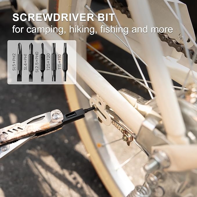- 【26-IN-1 MULTI-TOOLS】Our multitool includes 26 tools: needle-nose & regular pliers, YG12 wire cutter, knife, saw, diamond-coated and metal file, scissors, flat screwdriver (3,5,6mm), bottle & can openers, rope cutter, wire stripper, threading needle, pocket clip, and it also comes 10-in-1 bit set as freebie, you can carry up your widely used one when you're outing.