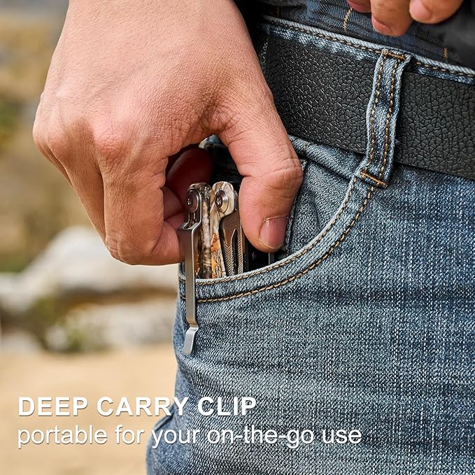 - 【CONVENIENT CARRYING】 The multi tool plier with pocket clip is also available with a nylon sheath for carrying it on a belt or a pack strap, keeping it close at hand. Every detail ensures this sheath is long-lasting, dependable, and easy to use. A high-grade metal rivet snap closes tightly and keeps your tool secure.