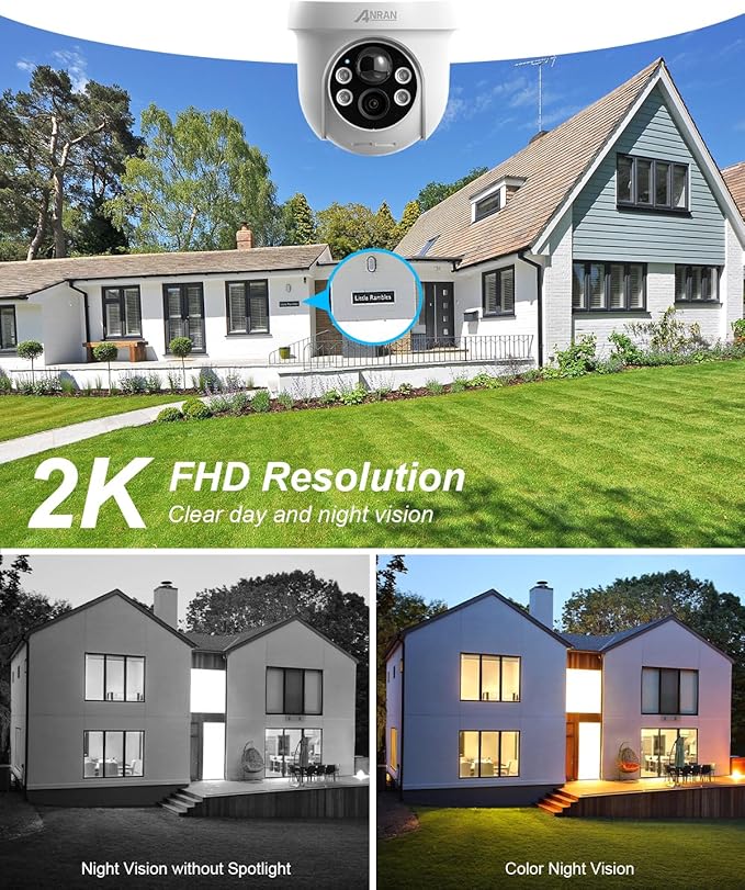- Crisp Image & 360°View: ANRAN Solar Powered Camera takes a panoramic shooting and make sure no blind spots or zone,and get great video quality. Great IR night vision in darkness as well as Color night vision enabled by 4 powerful spotlights.