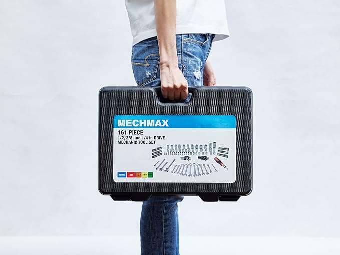 - 【Essential Mechanic's Selection】Features 161 crucial pieces for auto, motorcycle, and machinery maintenance, including 3/8" & 1/4" drive ratchet handle, a wide array of SAE & Metric sockets, hex key, combination wrenches, and essential driver bits