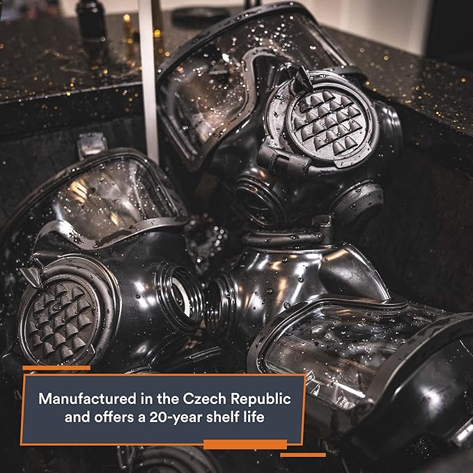 - PEACE OF MIND GUARANTEED - Be prepared in the long run with its 20-year shelf life. Its durable bromobutyl rubber construction meets CBRN protection standards. Tested resistance to mustard gas penetration for nearly 30 hours. Conforms to European quality and sustainability standards, marked with the CE symbol, and meets all requirements under EN 136:1998, Class III. Complies with all standards under EN 168 for impact protection, making this the perfect mask for riot control situations.