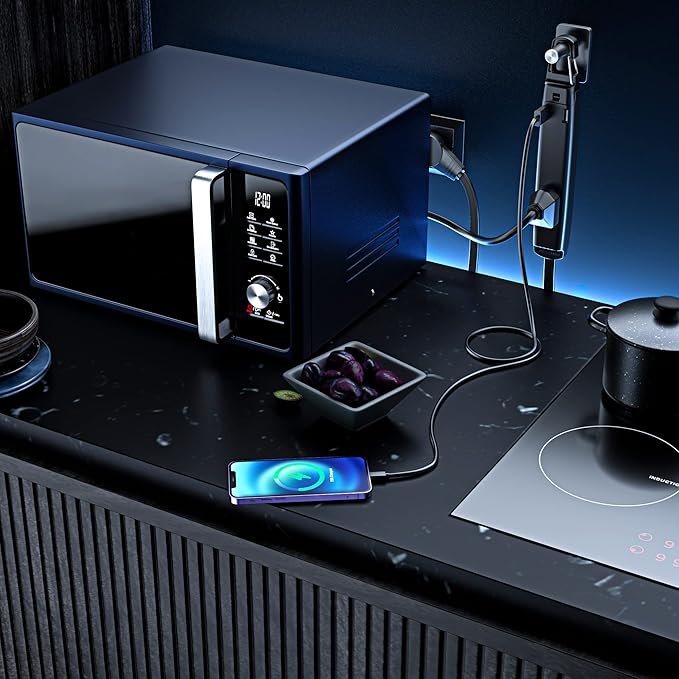 - 2 Built in High-speed USB Ports: The USB ports of this extension cord will automatically deliver the optimal and safe charging speed for them; The output of each USB port can reach up to 2.1A.