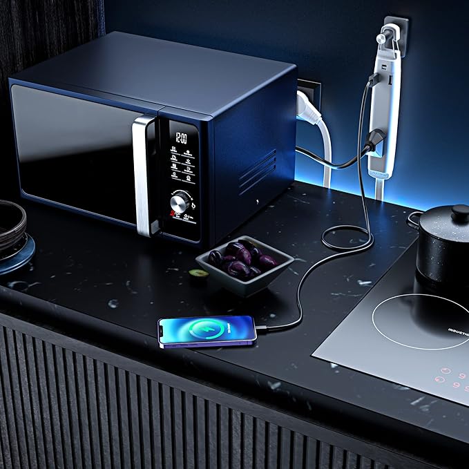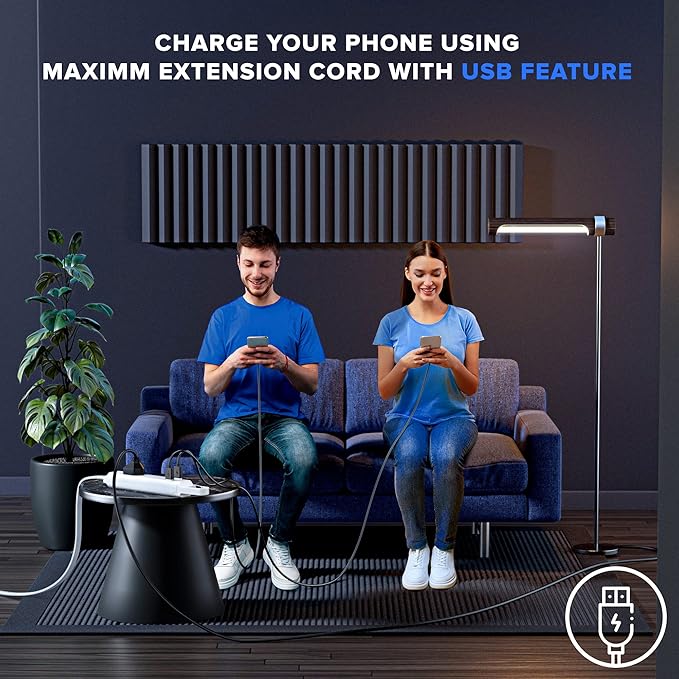 - 2 Built in High-speed USB Ports: The USB ports of this extension cord will automatically deliver the optimal and safe charging speed for them; The output of each USB port can reach up to 2.1A.