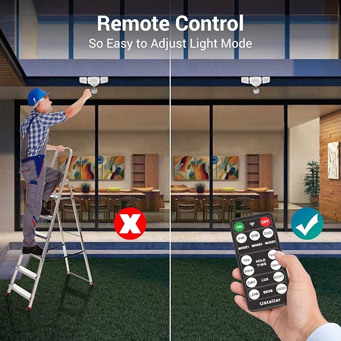 - 【Remote Control & Memory Function】Complete all settings with custom remote control, avoiding the hassle of adjusting light settings. Memory function ensures no need to reset after power outage. Get your hands on our motion sensor outdoor lights now!