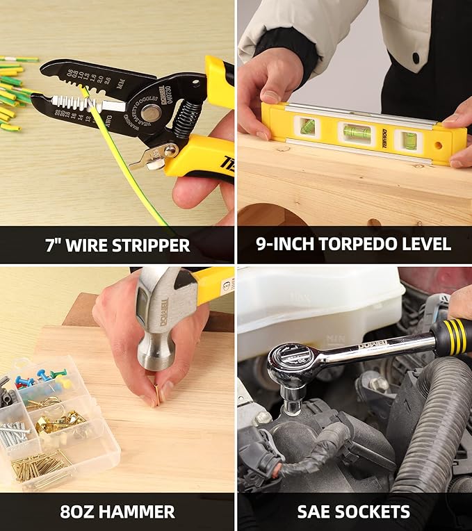 - [Perfect Gift to Family and Friends] This versatile tool set would make an excellent and thoughtful gift for new homeowners or anyone who could benefit from having a collection of basic tools at hand.