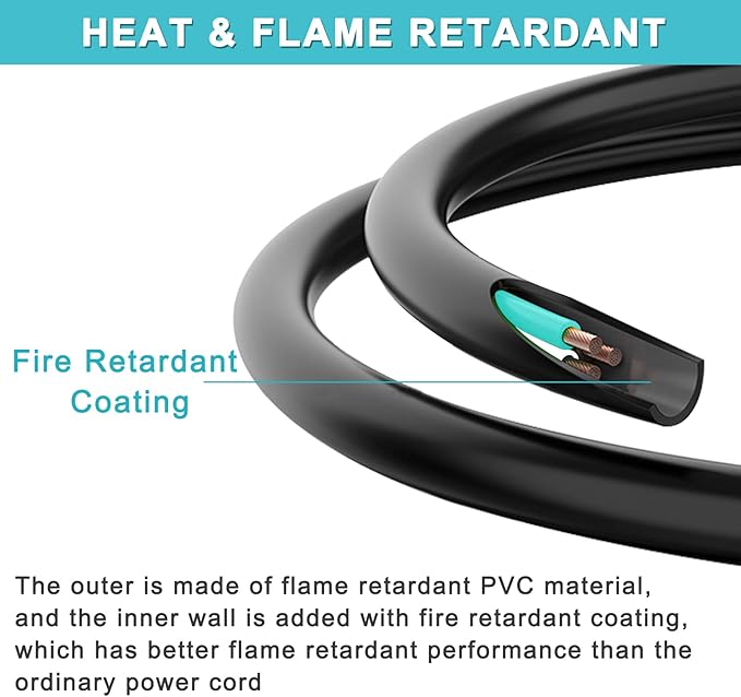 - 【SJT 16AWG/3C Gauge Cord】 Rated to carry: 125V at 13A,1625W. Built with pure copper wire, coated in wear-resistant PVC outer jacket, and features full-molding design. The heavy 16gauge extension power cord meets the power usage of most household appliances.