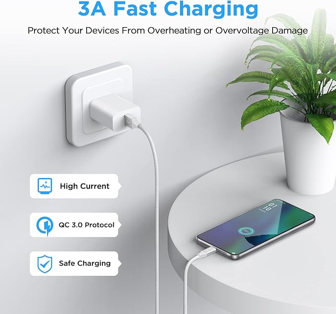 - Long-Lasting: Usb c charger cord uses integral seamless stretch process, high pressure resistance and nylon braided adding tangle-free, can bear 20000+ bending lifespan